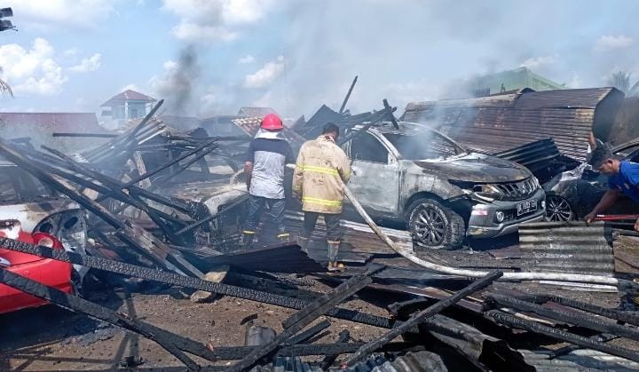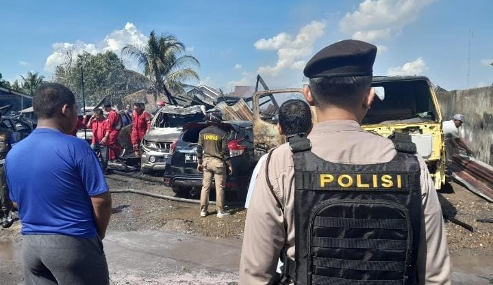 LAHAT | bhayangkaraperdananews.com – Telah terjadi kebakaran bengkel cat mobil dugaan sementara akibat konsleting listrik yang menyambar ke kompresor cat yang sedang beroperasi atau hidup mengakibatkan kebakaran bengkel Cat Mobil dan membakar 10 (sepuluh) Unit mobil dan 1 (satu) unit cabin mobil Cunter sehingga mengakibatkan rusak berat, Sabtu, 13/5/23 sekira pukul 13.30 wib di Jl.Lintas Sumatera desa Manggul Kec.Lahat kab.lahat (Dusun IV Manggul/perumnas Sage).