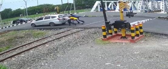 Aksi Heroik Kabid Humas Polda Jateng Dorong Mobil Mogok Selamat Dari Tertabrak Kereta Api