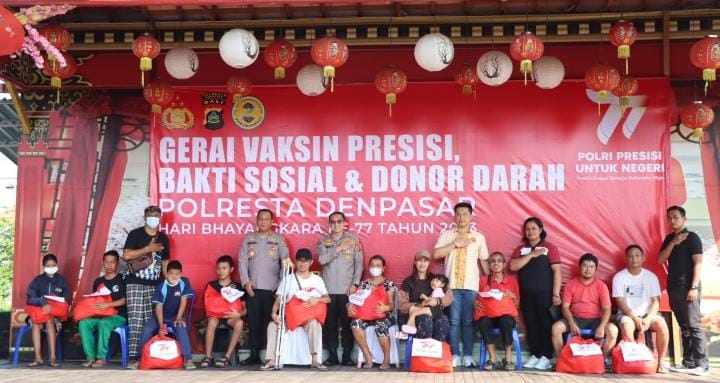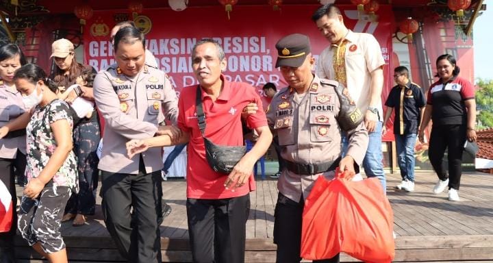 Bakti Sosial Polresta Denpasar Gelar Vaksinasi, Donor Darah Dan Pembagian Sembako