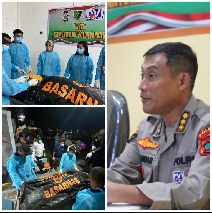 Polda Papua Barat menggelar konfrensi pers di RS. Bhayangkara, Selasa (20/5) pkl 17.00 WIT terkait hasil identifikasi 5 personil yang tiba kemarin malam di RS. Bhayangkara Polda Papua Barat. Lima dari sembilan korban yang ditemukan telah berhasil diidentifikasi oleh Tim DVI (Disaster Victim Identification) Polda Papua Barat.
