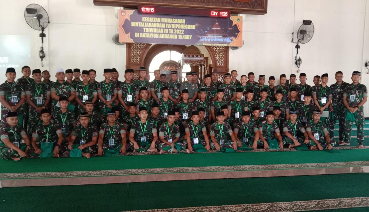 SEMARANG, bhayangkaraperdananews.com – Bintaljarahdam IV/Diponegoro menggelar kegiatan Muhasabah di Yonarharnud 15/DBY dalam rangka mengevaluasi diri serta memperbaiki etos kerja prajurit ke arah yang lebih profesional dengan dilandasi iman dan taqwa sesuai dengan ajaran Islam, Jumat (18/11/2022).