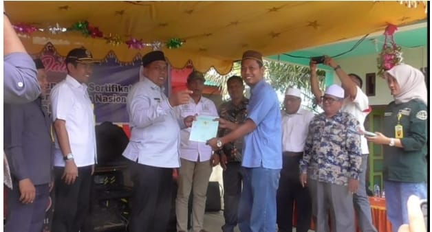 Warga terlihat senang dan berseri-seri, karena penantian panjang mereka terwujud, setelah menunggu lama membuat pemhonan melalui program pendaftaran tanah sistematis lengkap(PTSL) yang diberikan pemerintah secara gratis.