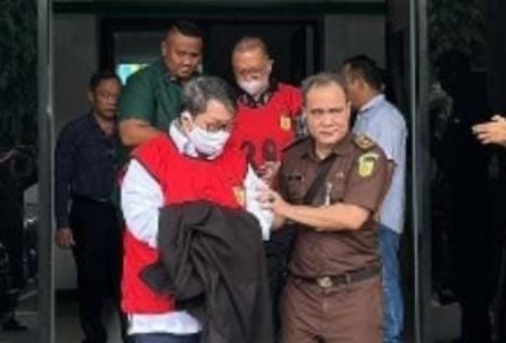 Subandi Gunadi yang didampingi tim penasihat hukum nyaris tidak berkutik saat tim eksekutor/Tabur Kejari Jakarta Utara dan Kejati DKI Jakarta langsung gercep meringkusnya begitu turun dari kendaraan.