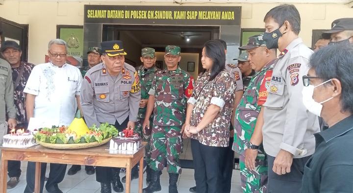 Kunjungan ini sendiri dalam rangka pemberian tumpeng dan kue ulang tahun Hari Bhayangkara ke 76 dan diterima langsung oleh Kapolsek Gunungsindur Kompol Birman Simanullang, SH.