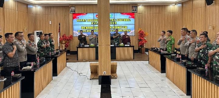 PURBALINGGA | bhayangkaraperdananews.com – Polres Purbalingga menggelar rapat koordinasi (Rakor) lintas sektoral dalam rangka Penanggulangan Konflik di wilayah hukum Polres Purbalingga. Rapat dilaksanakan di Aula Wicaksana Laghawa Mapolres Purbalingga, Jumat (1/8/2025) siang.