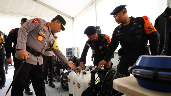 Dalam tinjauannya, selain melihat kesiapan personel, orang nomor satu di kepolisian ini juga memastikan seluruh peralatan yang digunakan untuk menghadapi situasi kontijensi terkait dengan bencana mulai dari peralatan SAR di laut, darat dan di udara maupun potensi ancaman bom dapat dioperasionalkan.