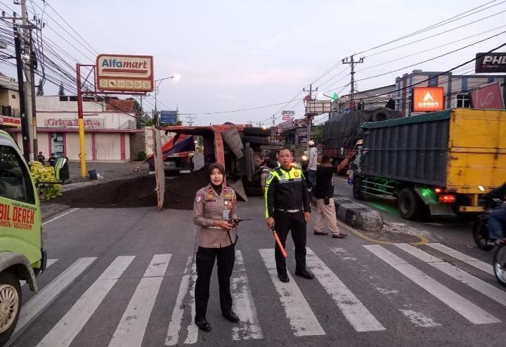 “Kendala kami saat evakuasi adalah pemindahan material pasir yang dibawa truk tersebut, ditambah jam pagi yang merupakan jam berangkat aktivitas baik kerja maupun sekolah.” Ungkapnya.