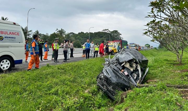 Diduga Mengantuk Toyota Hiace Tabrak Truk di Jalur Tol
