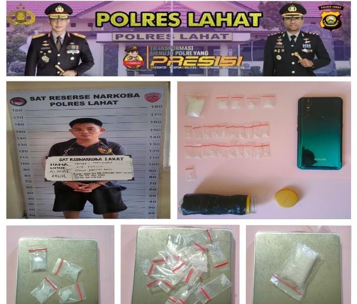 Dijelaskan Kasat Res-Narkoba melalui Kasubsi penmas humas polres lahat Aiptu Lispono SH. pada saat dilakukan penangkapan tersangka sedang berada disebuah pondok yang berada dibelakang rumah tersangka. Pada saat dilakukan pemeriksaan ditempat didapatkan barang bukti berupa 1 buah botol terbalut lakban, yang setelah dibuka berisikan 1 paket sedang dan 25 paket kecil serbuk kristal putih terbungkus plastik klip transparan diduga narkotika jenis sabu dengan berat brutto / kotor 5,3 gr (lima koma tiga) gram, di semak-semak tidak jauh dari tersangka diamankan. Kemudian petugas juga mendapatkan 1 ( satu ) unit handphone android merk Vivo V15 milik tersangka yang mana handphone tersebut ada kaitannya dengan transaksi narkotika jenis sabu yang dilakukan oleh Tersangka HT.