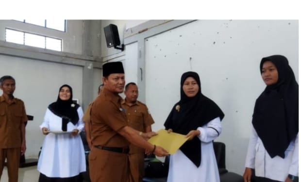 Penyerahan SPMT guru P3K itu berlangsung di Gedung kesenian desa Pulo sarok, kecamatan Singkil, Senin,(30/5/22) yang lalu.