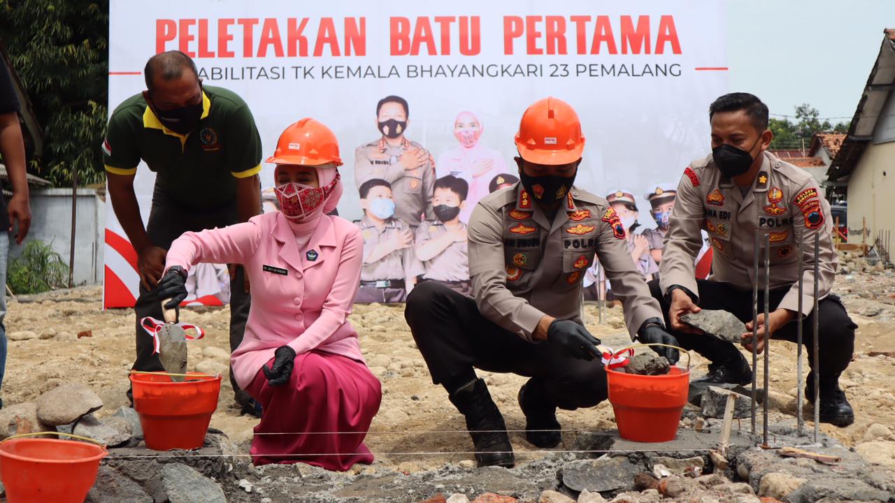 JATENG, bhayangkaraperdananews.com -Ditandai dengan prosesi peletakan batu pertama oleh Kapolres Pemalang AKBP Ari Wibowo bersama Ibu Ketua Bhayangkari Cabang Pemalang Ny. Anti Ari Wibowo, Kamis (25/03/2022), rehabilitasi TK Kemala Bhayangkari 23 Pemalang mulai dikerjakan dengan dukungan penuh dari Pemerintah Kabupaten Pemalang melalui Dinas Pendidikan dan Kebudayaan.