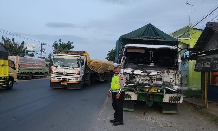 PATI | bhayangkaraperdananews.com – Dua truk terlibat kecelakaan lalu lintas di Jalan Juwana–Batangan, turut Desa Trimulyo, Kecamatan Juwana, Kabupaten Pati, Minggu (12/10/2025) sekira pukul 09.40 WIB. Peristiwa tersebut tidak menimbulkan korban jiwa maupun luka.