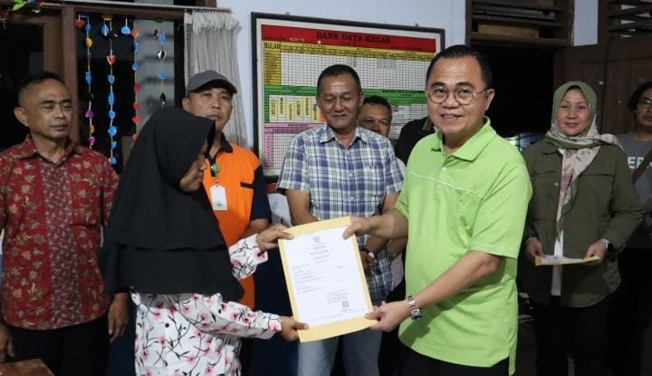 Usai bertemu Kades Bunisari, Sesditjen Dukcapil menyerahkan secara simbolik akta kematian kepada 3 orang ahli waris korban.