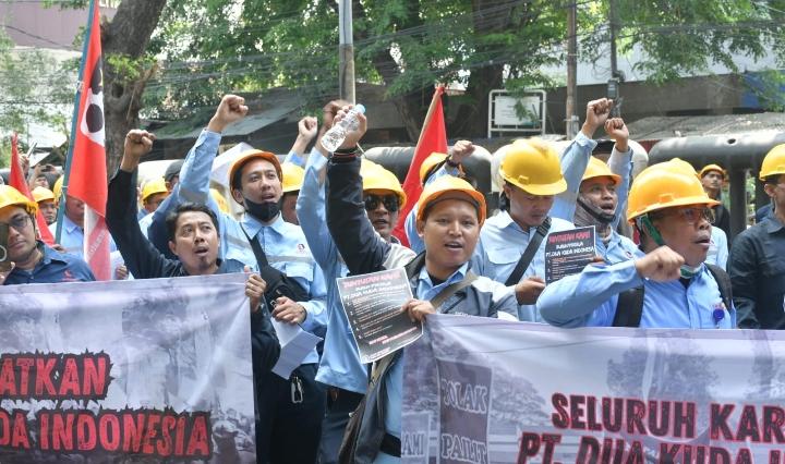 Dalam aksi tersebut, para pekerja mendesak Mahkamah Agung agar segera memberikan kepastian hukum atas proses kasasi dan peninjauan kembali yang diajukan perusahaan.