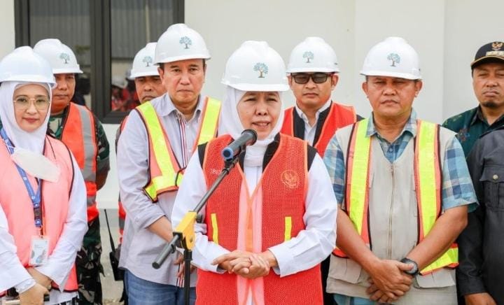 Setibanya di area PPSLB3, Gubernur Khofifah didampingi Sekda Kab Mojokerto Teguh Gunarto dan Direktur PT. PJL Haries Purwoko langsung melihat progres pengembangan kawasan PPSLB3, termasuk mengecek perizinan setiap item dari pabrik.