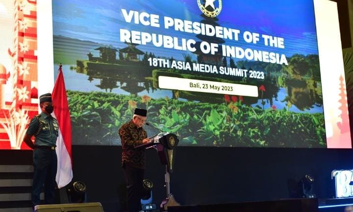 BALI | bhayangkaraperdananews.com – Wakil Presiden (Wapres) K.H. Ma’ruf Amin meresmikan pembukaan Asia Media Summit (AMS) ke-18 Tahun 2023 di Grand Hyatt Bali, Kawasan Wisata Nusa Dua BTDC, Jl. Nusa Dua, Benoa, Kabupaten Badung, Bali, Selasa (23/05/2023). Pada kesempatan tersebut, Wapres menyampaikan empat langkah strategis untuk para pelaku industri media.