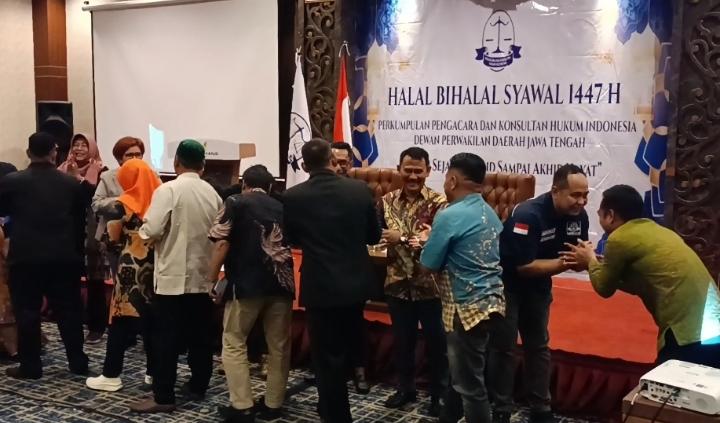 KOTA SEMARANG | bhayangkaraperdananews.com – Kegiatan Halal Bihalal yang diselenggarakan oleh Dewan Pimpinan Daerah Perkumpulan Pengacara dan Konsultan Hukum Indonesia (DPD PPKHI) Provinsi Jawa Tengah berlangsung dengan penuh kehangatan dan kebersamaan pada Jumat (17/4/2026) di Hotel Noorman, Jalan Teuku Umar, Semarang.