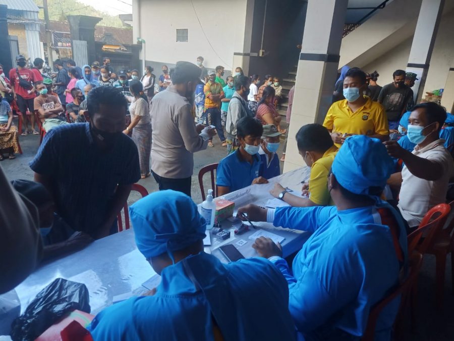Berlokasi di Balai Banjar Pesangkan, Desa Duda Timur, Kecamatan Selat, Kabupaten Karangasem team Vaksinator Polres Karangasem melaksanakan giat Vaksinasi Covid-19 sebagai wujud respon dan peran serta Polda Bali dalam program vaksinasi masyarakat Bali.