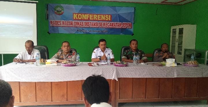 BLORA | bhayangkaraperdananews.com – Bertempat di balai Desa Blungun, desa yang terletak di tengah hutan, Konferensi Kades/Kalur/Dinas/Instansi se-Kecamatan Jepon menghasilkan beberaa kesepakatan dan informasi penting, Rabu 14 Januari 2026.