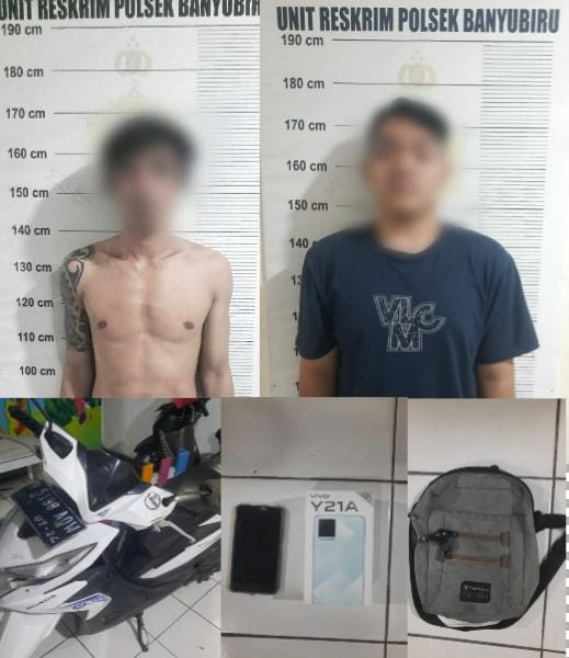 Kedua pelaku diketahui merupakan warga Kota Semarang berinisial VS (33 Th) dan  DB (20 Th). Dari tangan pelaku, Polsek Banyubiru mengamankan barang bukti 1 (Satu) unit kendaraan roda 2 Honda BeAt dengan nopol H 5198 AQW, 2 buah helm dan tas slempang yang digunakan pelaku untuk melakukan aksinya. Serta Hp merk Vivo Y21A Diamond glow milik korban.