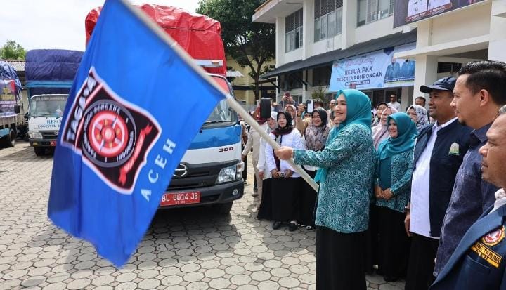 Ibu Gubernur Aceh sekaligus Ketua TP PKK Aceh, Ny. Marlina Muzakir, secara resmi melepas tiga truk bantuan logistik menuju Kabupaten Aceh Jaya, Aceh Barat, dan Nagan Raya, Rabu (22/10/2025).
