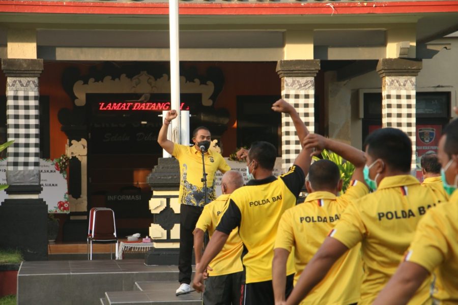 GIANYAR, bhayangkaraperdananews.com – Guna menjaga imunitas tubuh di tengah pandemi Covid-19, Kapolres Gianyar AKBP I Dewa Made Adnyana, S.I.K., S.H., M.H. pimpin apel olahraga pagi bersama bertempat di Lapangan Apel Endra Dharmalaksana Polres Gianyar. Jumat(11/6/2021).