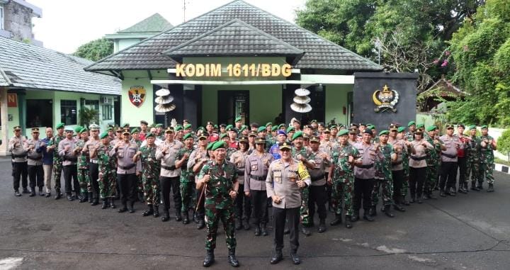 Hadir dalam kegiatan tersebut pejabat utama Kodim 1611/Badung dan PJU Polresta, Kapolsek jajaran, Danramil jajaran, Personel Sat Samapta Polresta dan personel Kodim 1611/Badung.