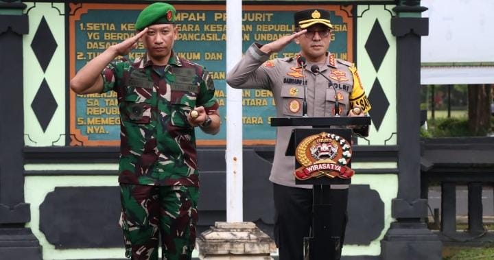 Kapolresta Denpasar Kombes Pol. Bambang Yugo Pamungkas, S.H., S.I.K., M.Si. dan Dandim 1611/Badung Letkol Arh.Teguh Waluyo memimpin langsung pelaksanaan apel tersebut di Halaman Makodim.