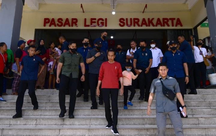 JATENG, bhayangkaraperdananews.com | Surakarta – Para pedagang di Pasar Legi, Kota Surakarta, Provinsi Jawa Tengah mendapatkan keberkahan di penghujung Ramadan tahun ini. Hal tersebut dikarenakan Presiden Joko Widodo didampingi cucunya, Jan Ethes Srinarendra mengunjungi pasar tersebut sambil membagikan sejumlah “THR”, pada Kamis, 20 April 2023.