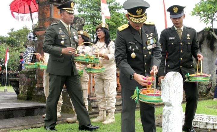 TABANAN, bhayangkaraperdananews.com – Wujud bakti dan penghormatan kepada Pahlawan, menjelang puncak peringatan Hari Ulang Tahun Tentara Nasional Indonesia yang jatuh setiap tanggal 5 Oktober, Kodam IX/Udayana selalu menggelar Upacara Ziarah Rombongan di Taman Makam Pahlawan (TMP).
