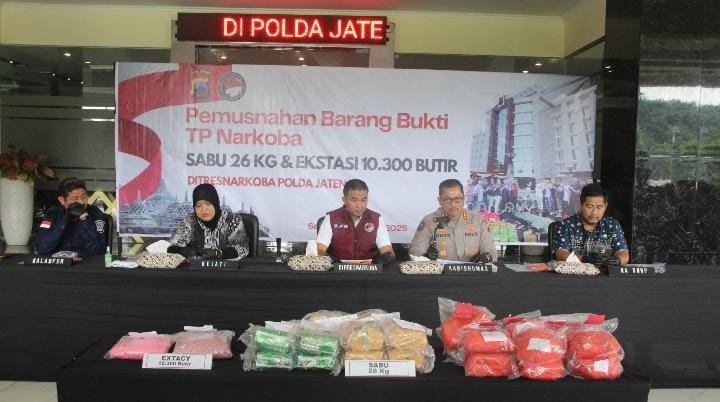 Dalam kegiatan itu, barang bukti yang dimusnahkan terdiri dari 26 kilogram sabu dan 10.300 butir pil ekstasi dengan total nilai mencapai Rp 31,15 miliar. Barang bukti tersebut merupakan hasil pengungkapan dua kasus narkotika sepanjang Januari hingga Februari 2025, yang turut mengamankan empat tersangka berinisial RT, MIA, SN, dan HS.