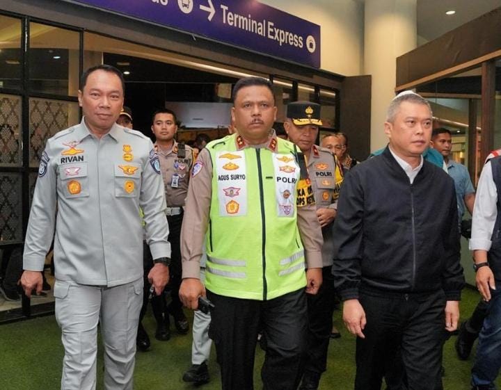 JABAR | bhayangkaraperdananews.com – Kakorlantas Polri Irjen Agus Suryonugroho, Menteri Perhubungan Dudy Purwagandhi, Direktur Utama Jasa Raharja Rivan Purwantono dan Direktur Utama ASDP Heru Widodo kompak memantau hari pertama pelaksanaan Operasi Ketupat 2025.