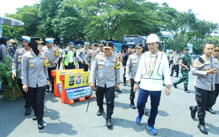 bhayangkaraperdananews.com | Kapolda Jawa Timur Irjen Pol Toni Harmanto, Waka Polda Jatim Brigjen Pol Akhmad Yusep Gunawan, didampingi Pejabat Utama (PJU) Polda Jatim, Senin (17/4/2023) siang, usai mengikuti Apel Gelar Pasukan Ops Ketupat Semeru 2023 di Makodam V Brawijaya, langsung melaksanakan pengecekan Pospam dan Posyan.