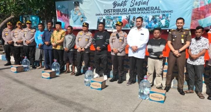 bhayangkaraperdananews.com – Polda Jatim mengirimkan bantuan air mineral untuk warga Gili Ketapang, Kecamatan Sumberasih, Kabupaten Probolinggo, Rabu (11/1/2023).