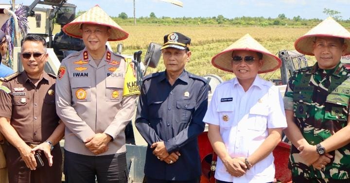 PALANGKARA RAYA | bhayangkaraperdananews.com – Kapolda Kalimantan Tengah Irjen Pol Iwan Kurniawan bersama Gubernur H. Agustiar Sabran dan Forkopimda Kalteng melaksanakan panen raya padi, di Desa Pantik, Kecamatan Pandih Batu, Kabupaten Pulang Pisau (Pulpis), Senin (7/4/2025).