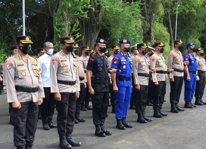 BADUNG, bhayangkaraperdananews.com – Kepala Kepolisian Resor Badung AKBP Leo Dedy Defretes, SIK, SH, MH mengikuti apel gelar pasukan operasi “Gapura Agung V tahun 2022” dalam rangka pengamanan G-20 Finance and Central Bank Deputies (FCBD) dan Finance Ministers and Central Bank Governors (FMCBG di Central Parkir ITDC Nusa Dua, (12/7) pagi 09.00 wita.