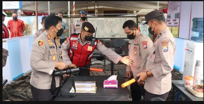 “Kami juga mengecek beberapa kelengkapan personil antara Mirror set, metal detector, lampu, senter ,rompi anti peluru,helm baja, lampu pengatur lalu lintas. Kita pastikan semua sarana dan prasarana dapat berfungsi dengan baik,” ulas AKBP Catur