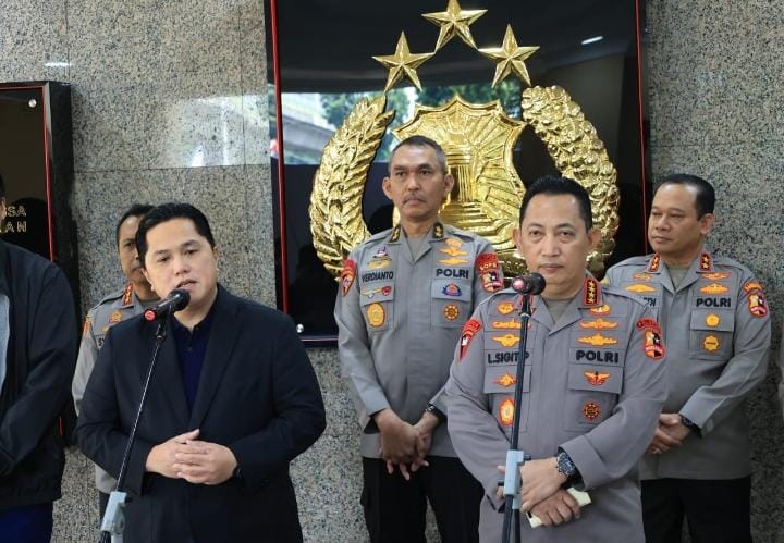 Dalam kesempatan ini, Erick pun menyampaikan apresiasi kepada Kapolri dan jajarannya yang ikut mendukung pesepakbolaan Indonesia menjadi lebih baik. Ia pun mencontohkan bagaimana pengamanan agenda tim nasional yang dilakukan Polri.