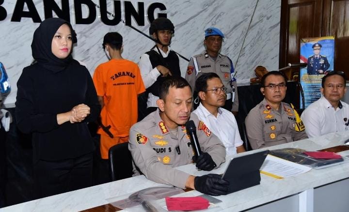 KOTA BANDUNG | bhayangkaraperdananews.com – Polrestabes Bandung melalui Kapolrestabes Bandung, Kombes Pol. Dr. Budi Sartono, S.I.K., M.Si., M.Han., didampingi Kasat Reskrim Polrestabes Bandung dan Kapolsek Panyileukan, menggelar press release terkait pengungkapan kasus yang menyebabkan hilangnya nyawa seorang pelajar SMK di wilayah Cibiru, Kota Bandung, Jumat malam, 1 Agustus 2025.