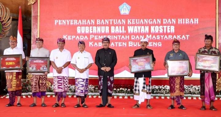 2. Dukungan dan apresiasi disertai ‘applause’ tepuk tangan kepada Gubernur Wayan Koster terus disuarakan, saat Murdaning Jagat Bali melakukan tatap muka dengan Pemerintah Daerah dan masyarakat di Kabupaten Buleleng pada, Minggu (Redite Kliwon, Pujut), 29 Januari 2023 di Gedung Kesenian Gde Manik yang diawali dengan pemberian Bantuan Keuangan Khusus Gubernur Bali kepada Pemerintah Kabupaten Buleleng senilai Rp 51,98 Milyar, Bantuan Hibah Aset Tanah seluas 3.425 M2 untuk Balai Penyuluh Pertanian di Kecamatan Seririt, Bantuan Hibah Aset Tanah seluas 7.220 M2 untuk Terminal Tope C di Kecamatan Sukasada, Bantuan Keuangan Khusus senilai Rp 51 Milyar kepada 170 Desa Adat se-Kabupaten Buleleng, Bantuan Keuangan Khusus senilai Rp 7,9 Milyar kepada Pemerintah Desa se-Kabupaten Buleleng untuk Tambahan Penghasilan Perbekel dan Perangkat Desa, dan Bantuan Keuangan Khusus senilai Rp 5,26 Milyar kepada 526 Subak se-Kabupaten Buleleng.