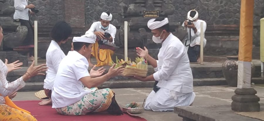 Setelah pelaksanaan persembahyangan , Kapolda Bali menyerahkan Punia berupa sepasang ungkulan/tedung putih kuning diterima oleh Jero Mangku Sigra, dan menyerahkan 5 (lima) Paket Sembako kepada Jero Mangku Pura Kahyangan Jagat Pura Pasar Agung , diterima masing-masing oleh Jero Mangku Gede Umbara bersama Jro Mangku Istri , Jero Mangku Sigra juga bersama Jro Mangku istri , dan Jero Mangku Wayan Puja.