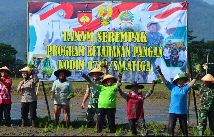 JATENG | bhayangkaraperdananews.com – Dalam rangka mendukung ketahanan pangan nasional, Komando Distrik Militer (Kodim) 0714/Salatiga menggelar kegiatan Tanam Serempak Program Ketahanan Pangan yang dipimpin langsung oleh Dandim 0714/Salatiga, Letkol Inf Guvta Alugoro. Kegiatan ini berlangsung di Sawah Demlot Kodim 0714/Salatiga, yang terletak di Kelurahan Lodoyong, Kecamatan Ambarawa, Kabupaten Semarang, Kamis(27/02).