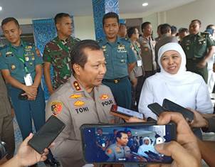 bhayangkaraperdananews.com | Forum Pimpinan Daerah (Forkopimda) Jawa Timur, Gubernur Jatim Khofifah Indar Parawansa, Kapolda Jatim Irjen Pol Toni Harmanto, Pangdam V Brawijaya yang diwakili, Rabu (13/4/2023) sore menggelar Rapat Koordinasi Lintas Sektoral Operasi Ketupat Semeru 2023, yang dilaksanakan di Gedung Mahameru, Mapolda Jatim.