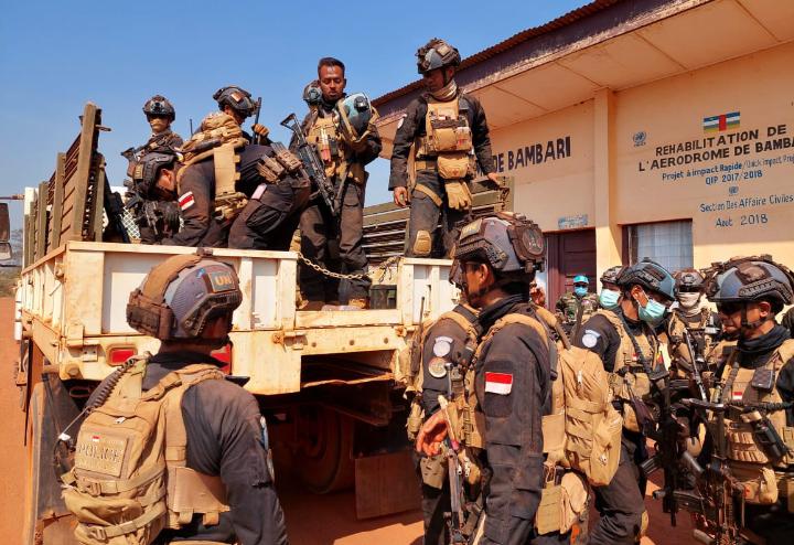 AFRIKA, bhayangkaraperdananews.com – Sesuai update terakhir dikota Bangui Republik Afrika Tengah, telah terjadi pembunuhan dan gangguan keamanan oleh kelompok kriminal bersenjata terhadap masyarakat sipil di Bakouma wilayah sektor timur Republik Afrika Tengah. Kepala Operasi gabungan Kepolisian untuk Republik Afrika Tengah ( HoPC ) Jendral Christophe Kabango BIZIMUNGU, Ph.D memberikan perintah langsung melalui frago kepanda SWAT team FPU Indonesia untuk menghilangkan ancaman yang terjadi di sektor tersebut.