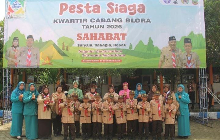 BLORA | bhayangkaraperdananews.com – Kwartir Cabang (Kwarcab) Blora mengadakan Pesta Siaga di Kecamatan Kedungtuban pada Sabtu, 14 Februari 2026, dengan tema “Sahabat” dan slogan “Satyaku Kudarmakan, Darmaku Kubaktikan”. Acara ini dihadiri oleh Kakak Hj. Ainia Shalichah, SH, M.Pd.AUD, M.Pd.BI, dan ratusan peserta dari 16 kecamatan di Blora.