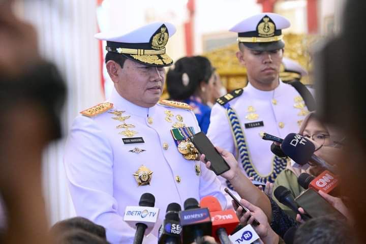 “Tadi baru saja telah kita lantik Laksamana TNI Yudo Margono, di samping saya, sebagai Panglima TNI, dan saya sudah pesan ke Panglima TNI untuk yang pertama menjaga kedaulatan NKRI, yang kedua menjaga kesatuan dan persatuan kita,” ujar Presiden dalam keterangannya kepada awak media usai pelantikan.