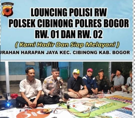 Wakapolsek Cibinong Polres Bogor Polda Jabar Akp Doddy Rosjadi, SH, MH melaksanakan kegiatan silahturahmi sekaligus Launching Polisi RW di kedua RW di kelurahan Harapan Jaya Kecamatan Cibinong Kabupaten Bogor tersebut Mengenalkan suatu terobosan Program baru Kapolres Bogor AKBP Dr. Iman Imanuddin, SH, S.I.K, MH, yang mana bertujuan lebih dekatnya Kepolisian Khususnya Personil Polres Bogor dan Jajaran Untuk Lebih Dekat kepada Warga Masyarakat dan Lebih Langsung Bisa Menangani Pernasalahan – permasalahan yang terjadi di lingkungan tingkat RW bersama Bhabinkamtibmas yang ada di Wilayahnya masing – masing, jelasnya