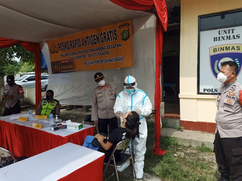 Berdasarkan pantauan di lokasi nampak warga terlihat antusias saat mengikuti swab di Posko Swab bertempat di halaman Mako Polsek Curug Polres Tangerang Selatan, Jl. Raya STPI Km. 05 Kel. Curug Kulon Kec. Curug Kab. Tangerang, (29/5/21).