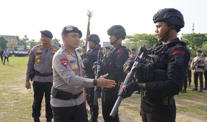 Apel pemberangkatan tersebut dipimpin langsung oleh Kapolda Riau Irjen Pol Dr. Hery Herjawan, S.I.K, M.H., M.Hum di halaman Mapolda Riau Jl. Pattimura Cinta Raja Kec. Sail Kota Pekanbaru.