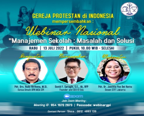 Dalam kerangka realitas persoalan di atas, Sinode Am Gereja Protestan Indonesia telah menyelenggarakan webinar yang berlangsung pada Rabu, 13 Juli 2022 yang diikuti oleh peserta dari ke-12 Sinode Gereja Bagian Mandiri, dan penyelenggara sekolah-sekolah Kristen yang berada di bawah naungan sinode setiap GBM.